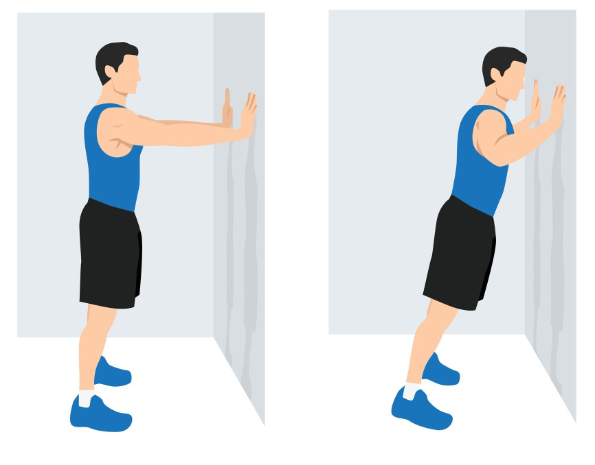 - While keeping your knees straight, lift the heels as high as you are able then slowly lower them back to the ground.