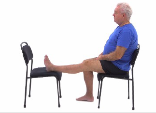 Place the heel of your surgical leg on a coffee table or stool, allowing gravity to straighten your knee. Hold for as long as you can, starting with 2 minutes and working up to 10 minutes.